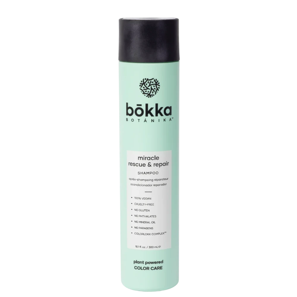 Limpia, nutre y fortalece suavemente el cabello teñido, dañado o frágil. El champú Miracle Rescue & Repair está formulado con proteína de quinua, proteína de soja y extracto de semilla de guaraná para ayudar a restaurar el cabello y agregarle un brillo tremendo.   También contiene un copolímero exclusivo de origen vegetal que sella las cutículas del cabello que han sido dañadas después de la decoloración, la coloración o el peinado con calor.